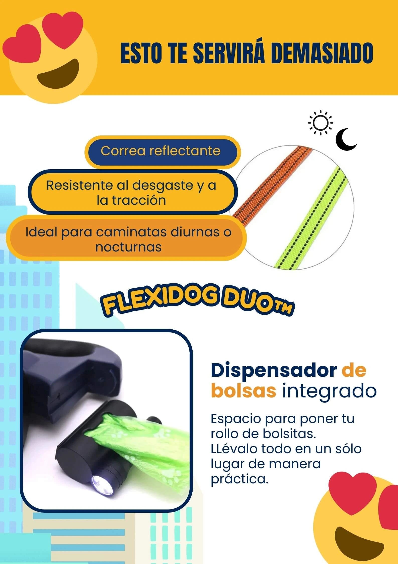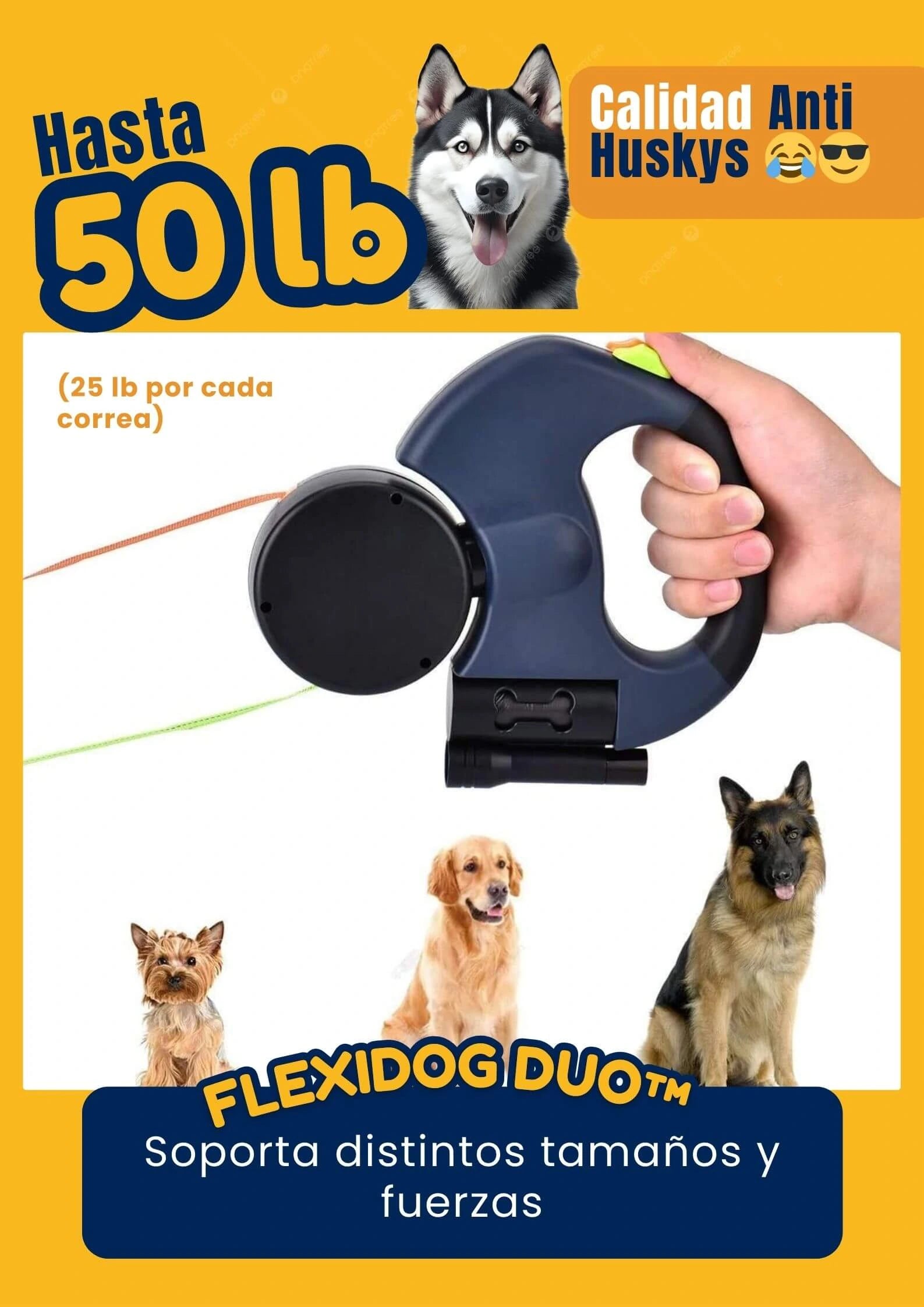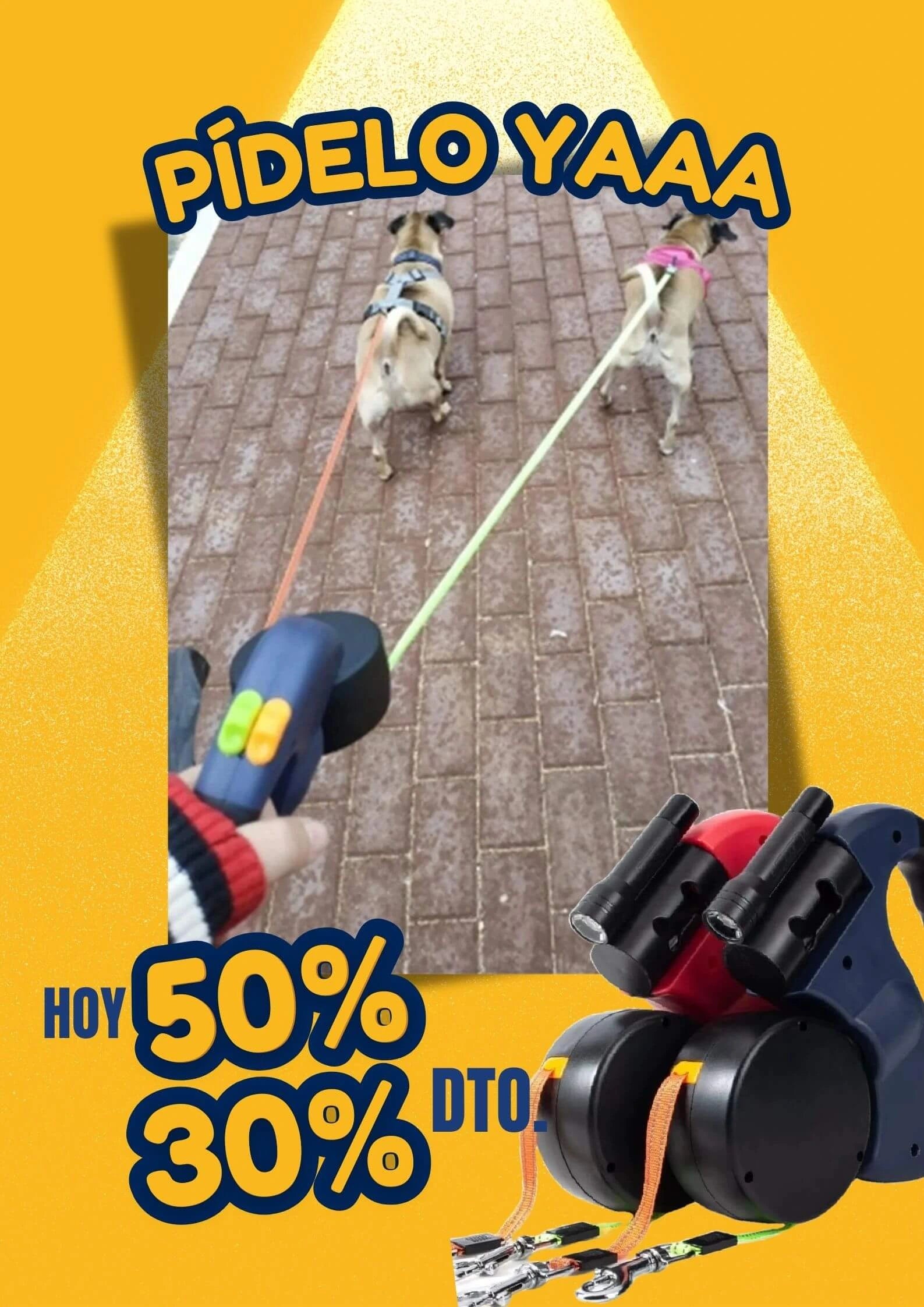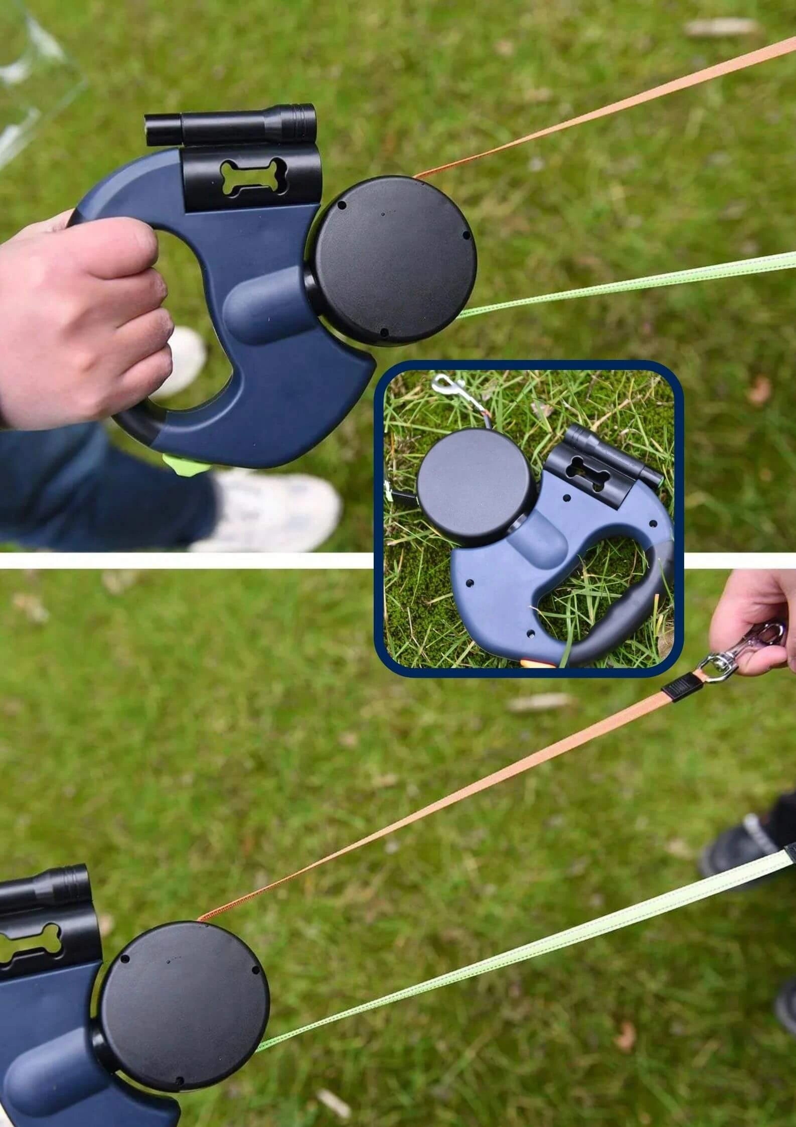 FlexiDog Duo™ incorpora un sistema de rotación 360° anti-enredos, botones dobles de control independiente y materiales duraderos con diseño ergonómico, todo en un solo dispositivo compacto.