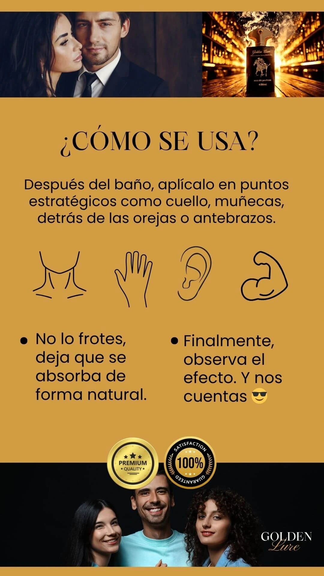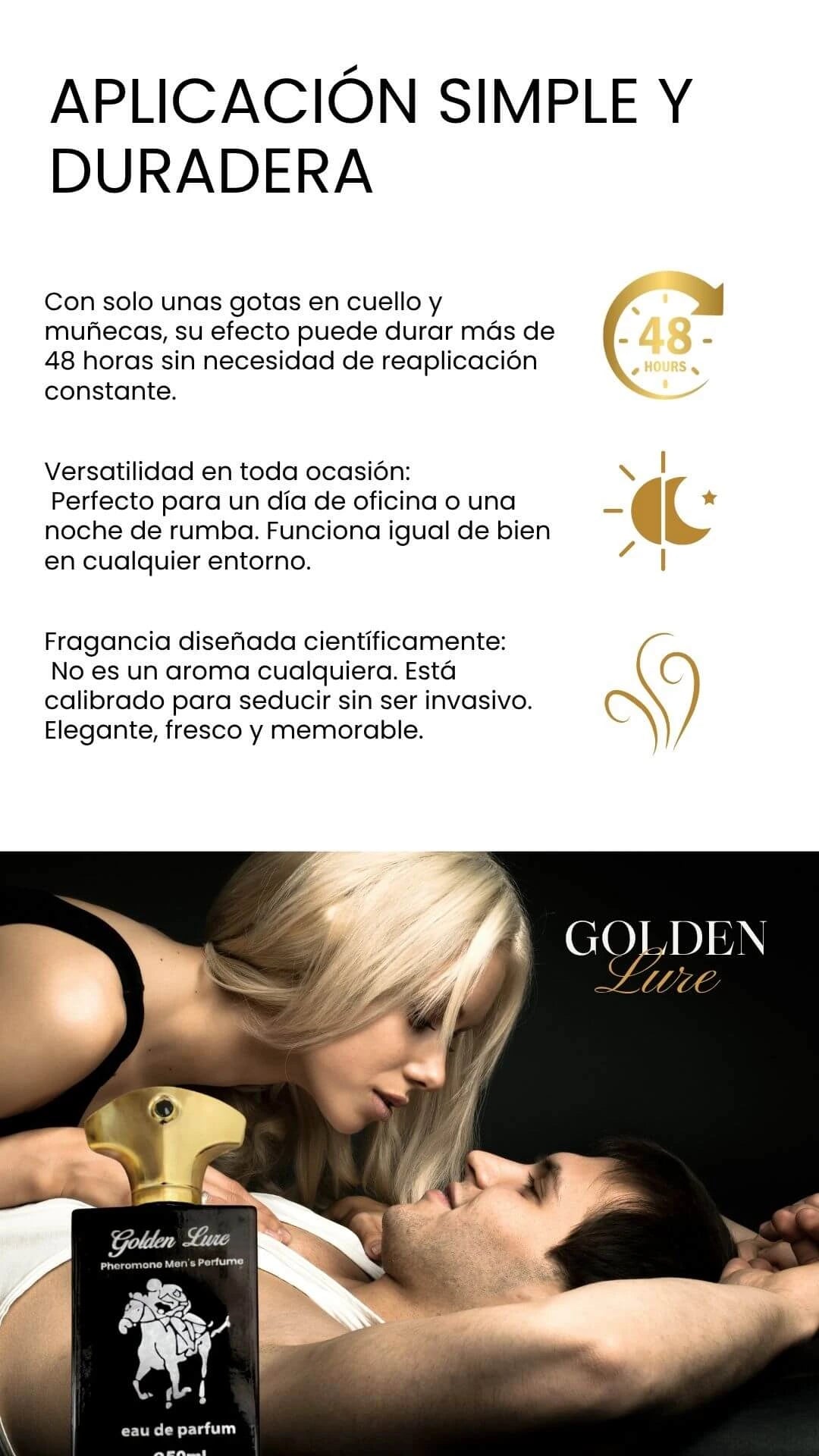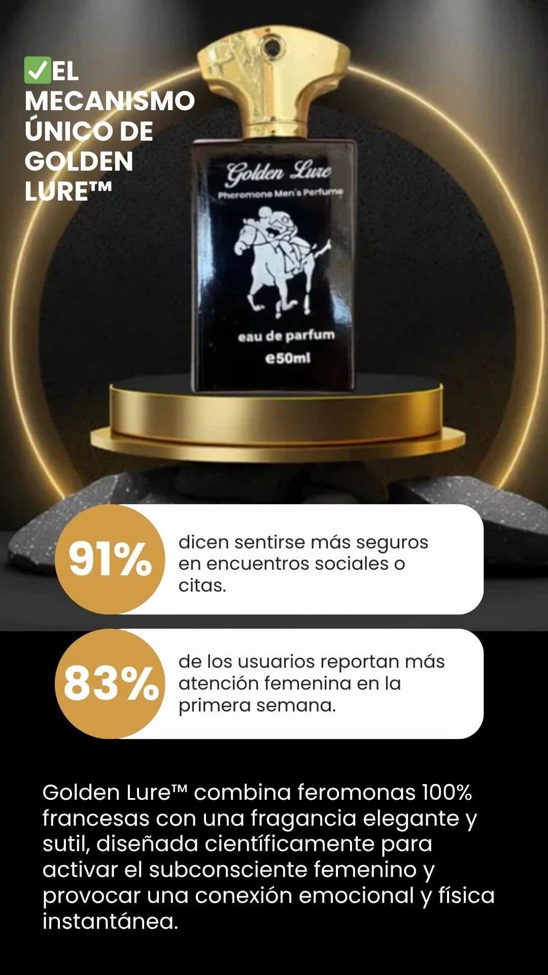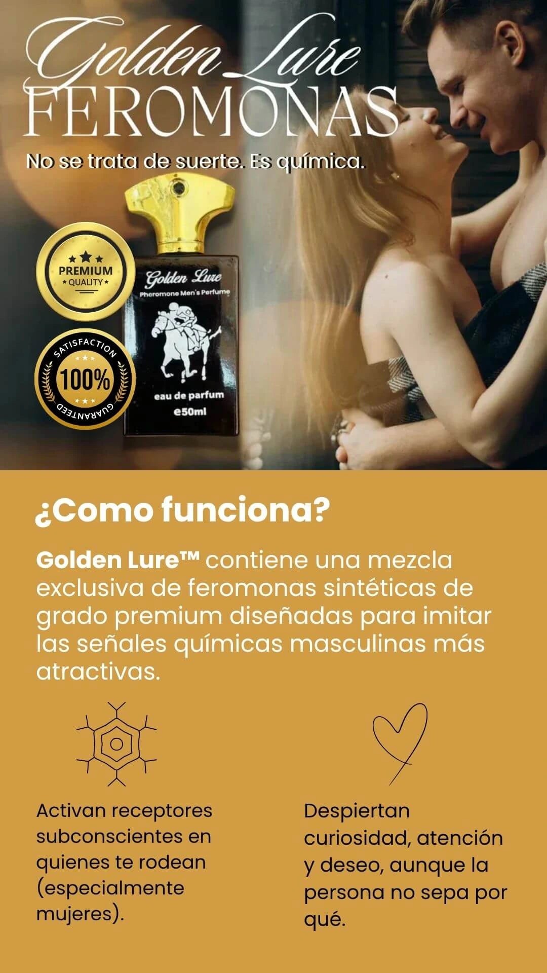 Golden Lure™ es el perfume de feromonas científicamente diseñado para ayudarte a atraer mujeres, mejorar tu confianza, y destacar en cualquier entorno — con resultados visibles desde el primer día.