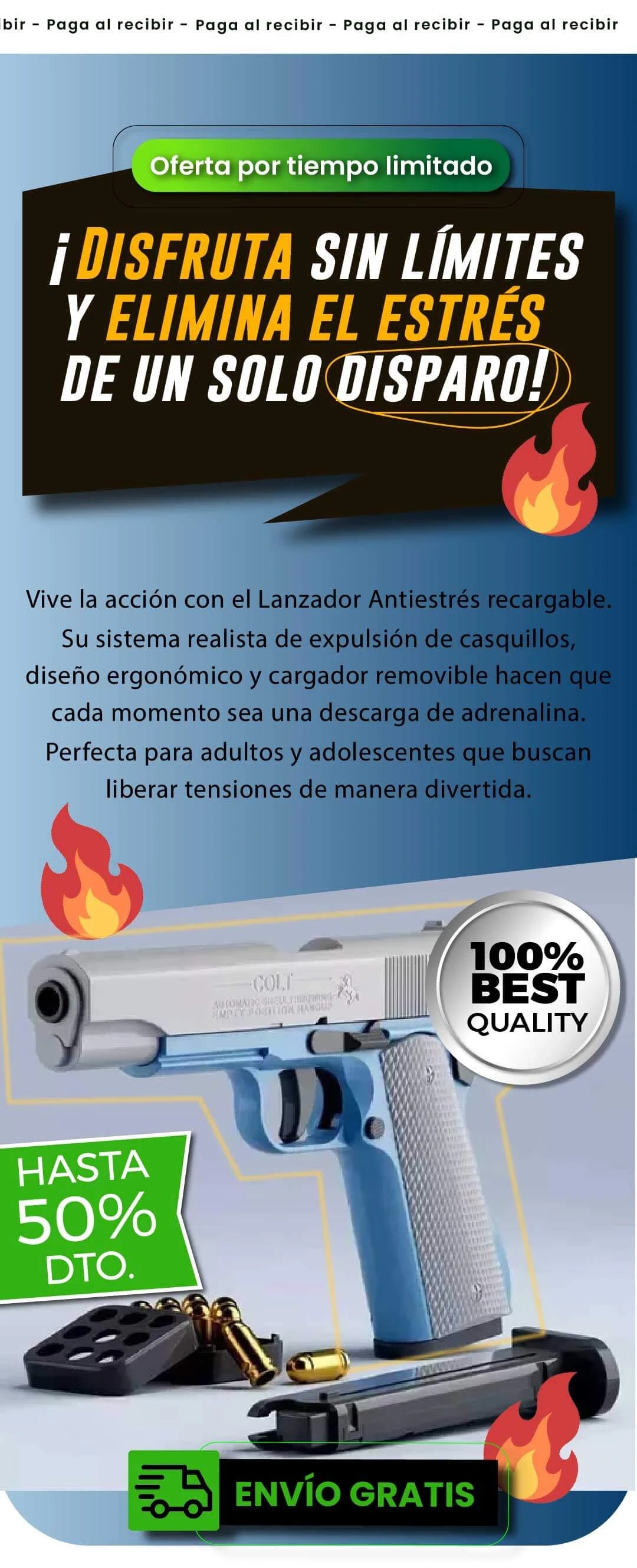 Recibirás el Lanzador Deagle Antriestrés, 9 municiones reutilizables y un manual de uso.